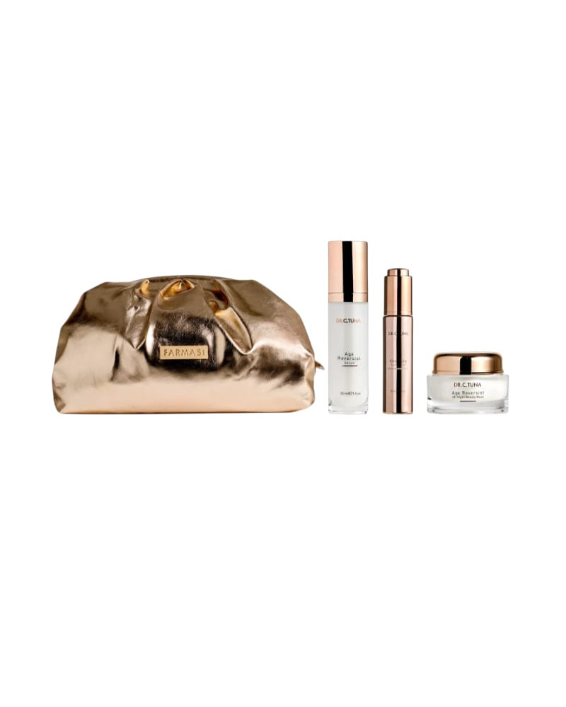 Un set de belleza lujoso que combina el rejuvenecedor Absolute Super Elixir con dos esenciales de Age Reversist—Suero y Mascarilla Nocturna—diseñados para revelar una piel radiante y de aspecto juvenil. Presentado en un elegante clutch rosa dorado, es el máximo lujo para su ritual de cuidado de la piel.