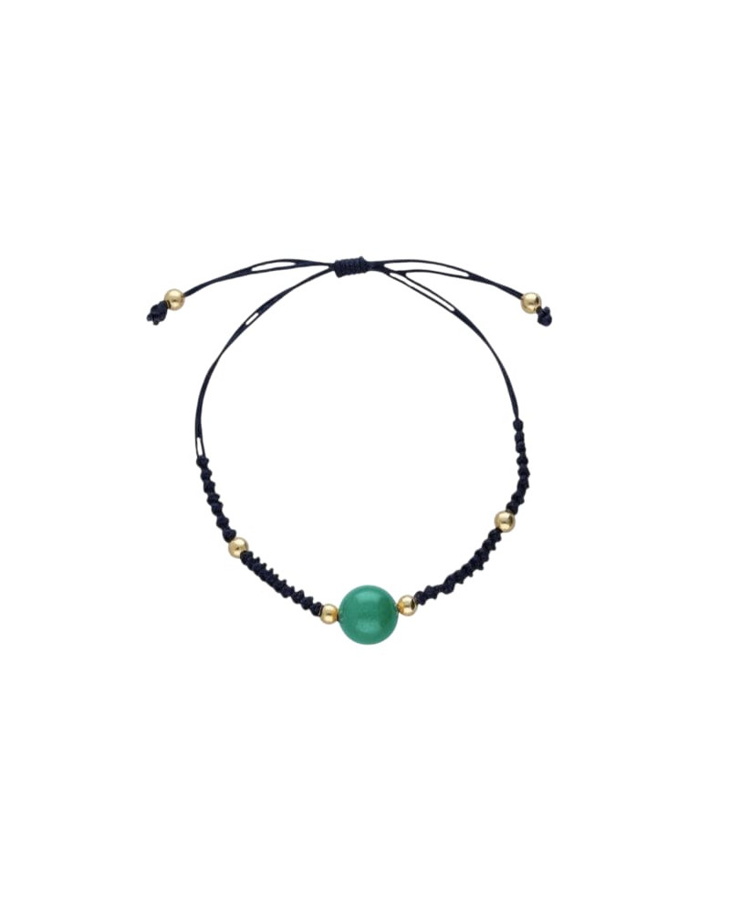Pulsera con Bola de Aventurina Verde Natural 100%. El diámetro de la bola de Piedra Natural es de 10 mm. La medida es elástica y ajustable. Al tratarse de minerales naturales cada pulsera es única en aspecto.