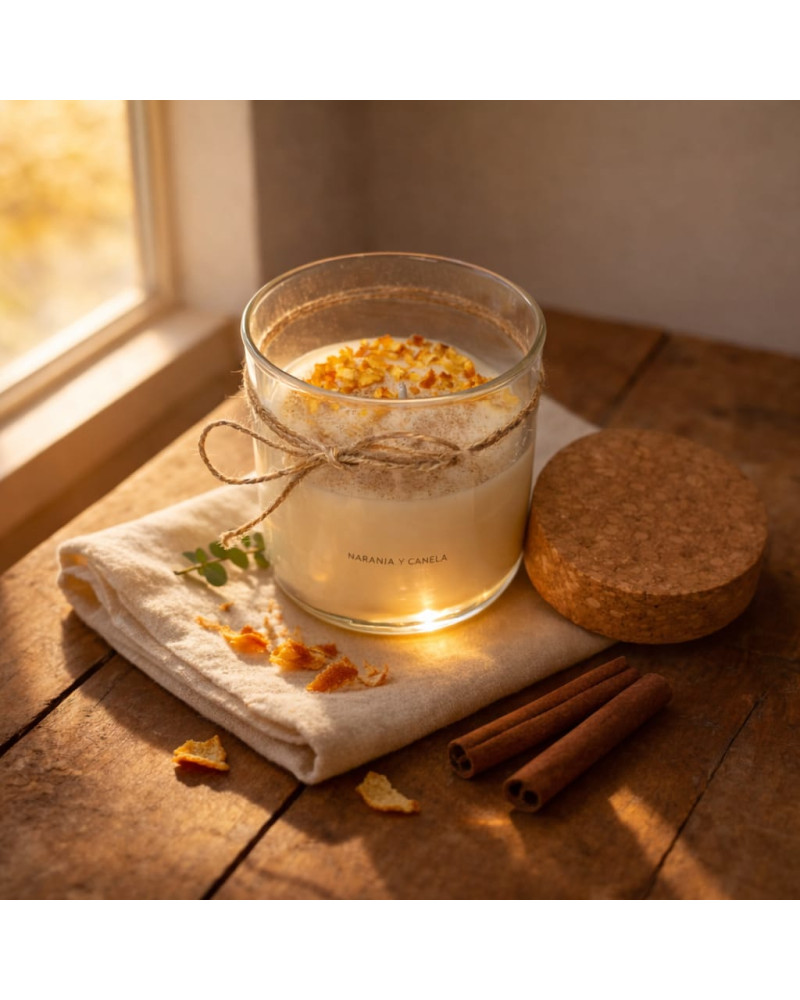 Vela elaborada a mano con cera de soja 100% natural.
